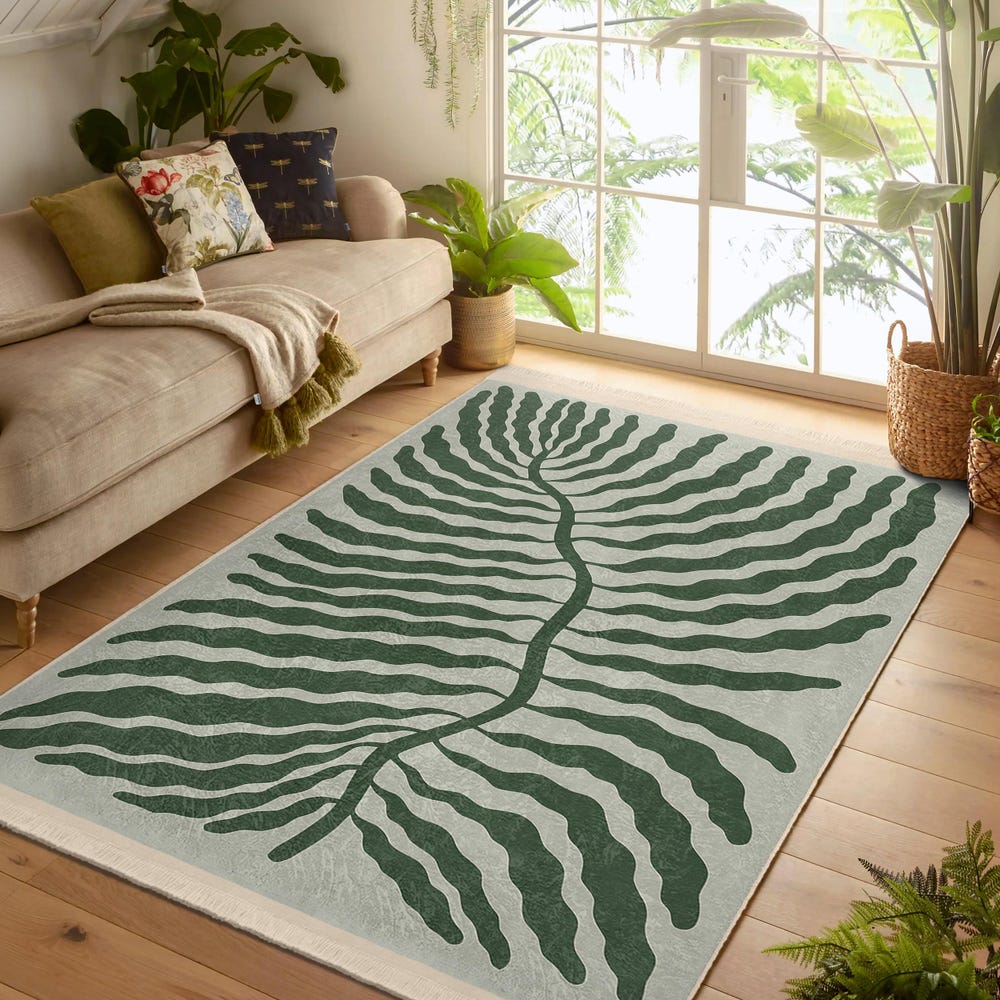 Green Leaf Area Rug|Botanical Living Room Rug|Scandinavian Floor Mat|Minimalist Carpet|Matisse Leaf Area Carpet|Boho Rug|Housewarming Gift